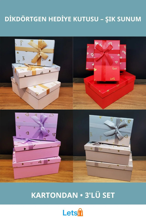 - Boyutları ile farklı hediye alternatifleri sunar: - Büyük boy: 15.5 cm x 22.5 cm x 5.5 cm - Orta boy: 14 cm x 20.5 cm x 7.5 cm - Küçük boy: 12.5 cm x 18.5 cm x 5.5 cm Sevgililer Günü, doğum günleri gibi özel günlerde kullanıma uygun.