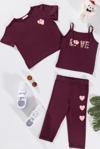 For You Kids 3'lü Love Baskılı Tshirt Atlet Tayt Bordo Takım %95 Pamuk %5 Elastan kumaştan üretilen baskı detaylı bu harika takım, şık tasarımıyla miniklerin kalbinde taht kuracak! Rahat yapısı ile çok şık bir tasarıma sahip renklerin harika uyumundan oluşan bu modelimiz, çocuğunuzun beğenisini kazanacaktır. Nefes alabilen esnek kumaştan üretilmiştir.