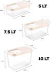Open Home Concept 3'lü Multibox 10 Lt Bakliyat Saklama Kabı - Kayar Kapaklı Erzak Saklama Kabı Un Kabı Krem
