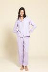 For You Moda 3'lü Organik Beyaz Biyeli Lila Pijama Takımı Çeşitli renkleriyle %100 organik olarak üretilen 3 parçadan oluşan bu takım ile evde de göz kamaştırmaya hazır mısın? Uzun kollu bir gömlek ile ayak bileklerine kadar uzanan bir pantolon ve kendi renginde uyku gözlüğünün uyumlu birlikteliğinden oluşuyor. Doğal, organik yapısı, şık tasarımı ve konforlu yapısıyla huzurlu uykular vadediyor. Günün her anında giyebilirsin. Kalıplar tam kalıptır. Bedeninizi alabilirsiniz.