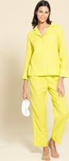 For You Moda 3'lü Organik Beyaz Biyeli Sarı Pijama Takımı Çeşitli renkleriyle %100 organik olarak üretilen 3 parçadan oluşan bu takım ile evde de göz kamaştırmaya hazır mısın? Uzun kollu bir gömlek ile ayak bileklerine kadar uzanan bir pantolon ve kendi renginde uyku gözlüğünün uyumlu birlikteliğinden oluşuyor. Doğal, organik yapısı, şık tasarımı ve konforlu yapısıyla huzurlu uykular vadediyor. Günün her anında giyebilirsin. Kalıplar tam kalıptır. Bedeninizi alabilirsiniz.