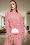 Soğuk kış gecelerinde size sıcaklık ve konfor sunacak, mor renkli kalpli desenli 3'lü pijama takımımızla tanışın! %100 polyesterden üretilen, yumuşacık polar kumaşıyla, rahat ve şık bir uyku deneyimi yaşayacaksınız. Reglan kollu ve bisiklet yakalı tasarımıyla hareket özgürlüğü sunarken, patch detayı ile de tarzınızı yansıtabilirsiniz.