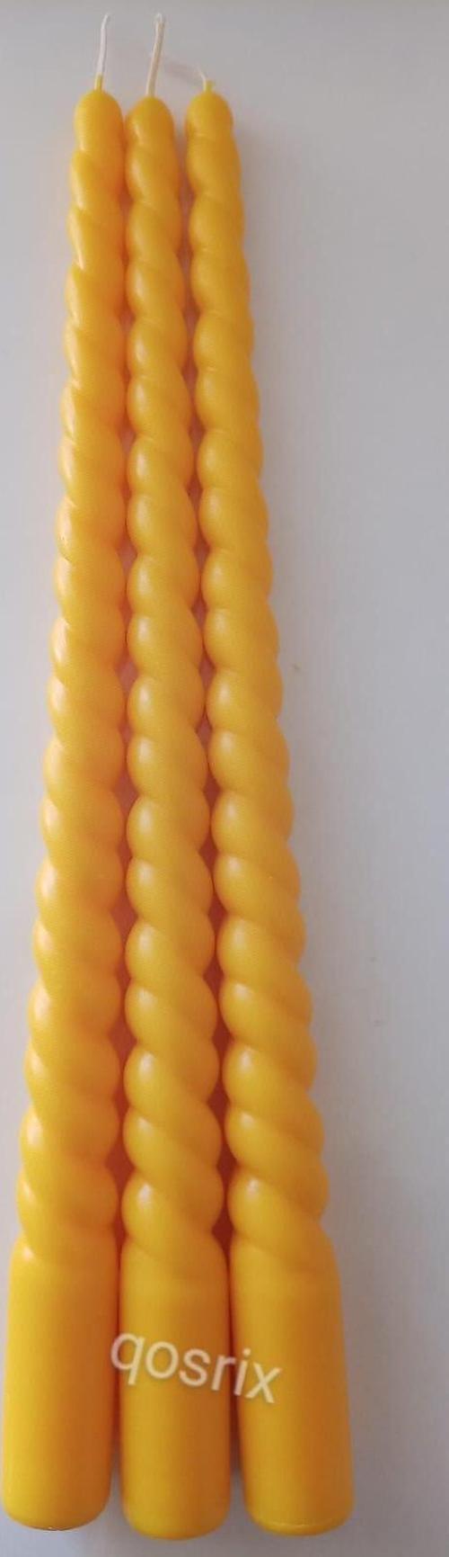 qosrix 3'lü Sarı Burgulu Şamdan Mumu 1. Kalite Doğal Kokulu Uzun Çubuk Konik Burgu Spiral Mum Dekoratif