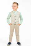 Pamuklu kumaştan üretilmiş bu özel set; çizgili gömlek, düğmeli yelek ve gabardin pantolondan oluşuyor. Yumuşak dokusu ve rahat kesimi sayesinde çocuğunuza gün boyu konfor sunarken, şık tasarımıyla özel günlerde de öne çıkar. Modern çizgileriyle hem rahat hem de stil sahibi bir görünüm sağlar.