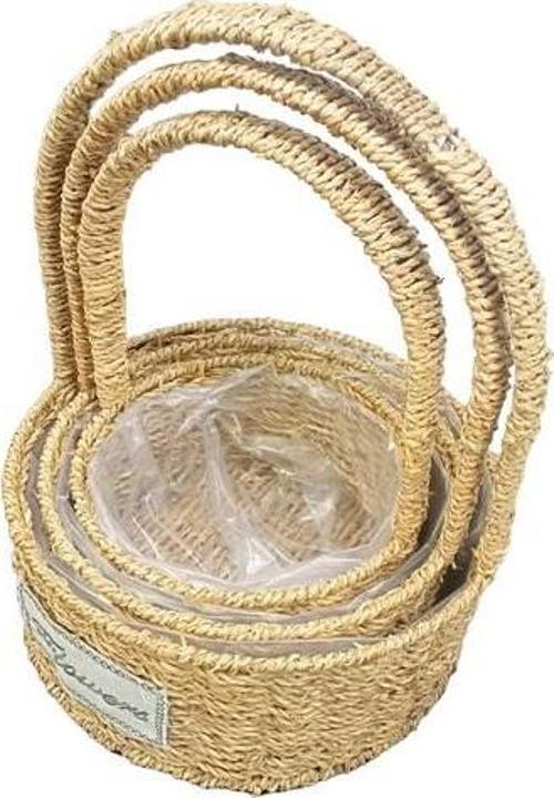 Yuvarlak Doğal Hasır Sepet Seti - 3'lüÜrün Açıklaması: Bu doğal hasır sepet seti, şık ve rustik tasarımıyla ev dekorasyonunda estetik bir dokunuş sunar. Üç farklı boyutta yuvarlak sepet içerir ve kullanışlı sapları sayesinde taşıması oldukça rahattır. Çok amaçlı olarak kullanılabilen bu sepetler, dekoratif amaçlı olarak ya da saklama ve taşıma amaçlı kullanılabilir. Doğal malzemeden üretilmiş olup çevre dostu bir seçenek sunar.Özellikler:Malzeme: Doğal hasırRenk: Natürel hasır rengiBoyutlar: 3 farklı boy (Küçük, Orta, Büyük)Saplı Tasarım: Kolay taşıma için saplıÇok Amaçlı Kullanım: Ev dekorasyonu, saklama ve taşıma için idealPaket İçeriği:1 adet Küçük Boy Yuvarlak Hasır Sepet1 adet Orta Boy Yuvarlak Hasır Sepet1 adet Büyük Boy Yuvarlak Hasır Sepet
