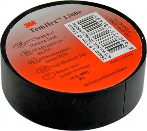 3M Temflex 1300e PVC İzole Bant 10 lu Siyah (18mm x 9,15Mt x 0,13mm)