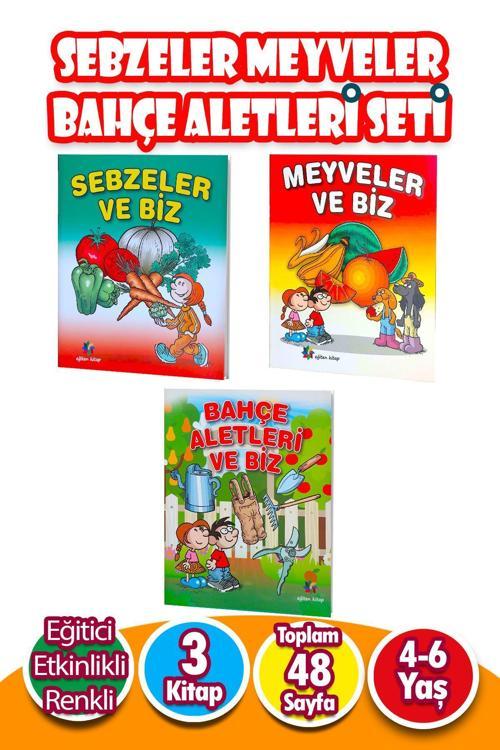 4 - 6 Yaş Sebzeler Meyveler Ve Bahçe Aletleri Seti - 3 Kitap 48 Sayfa Eğitici Etkinlik
