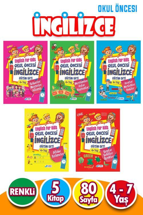Okul Öncesi İngilizce Eğitim Seti Yeni Başlayanlar için 750'den Fazla Kelime Öğreten Set Çocuklara İngilizce'yi eğlenerek öğretecek bir etkinlik ve aktivite setidir. - 5 Kitap Toplam 80 Sayfa - 20