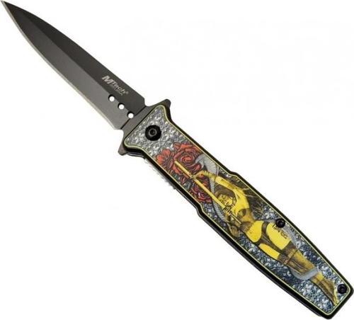 4-9-1 Kadın Figürlü Kamp Çakı 21cm- Yarı Otomatik, Kemerlikli