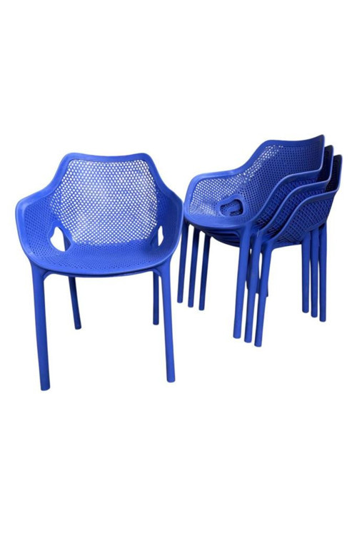 4 Adet Royal Koltuk Bahçe, Balkon ve Cafe Sandalyesi Mavi