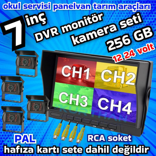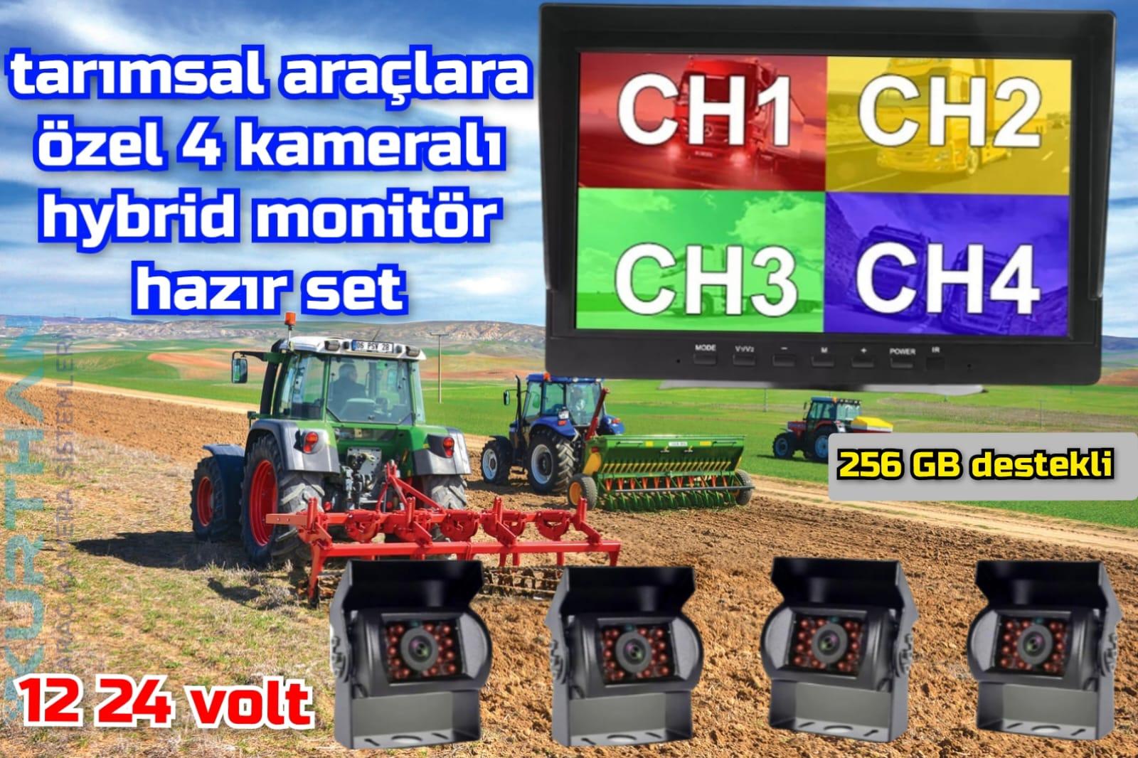 4 ADET ŞAPKALI METAL KASA LEDLİ KAMERA QLED IPS HYBRİD 256 GB DESTEKLİ 7 İNÇ DVR MONİTÖR