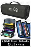 Artlantis 4 Gözlü Kalem Çantası 1 Adet Dört Bölümlü Kalemlik Sanatsal Şeffaf Bölmeli Kulplu Taşınabilir Kumaş Kalemlik