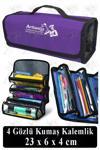 4 Gözlü Kalem Çantası 1 Adet Dört Bölümlü Kalemlik Sanatsal Şeffaf Bölmeli Kulplu Taşınabilir Kumaş Kalemlik