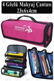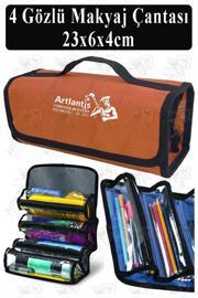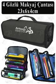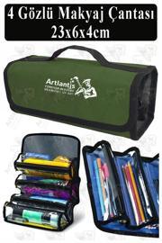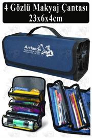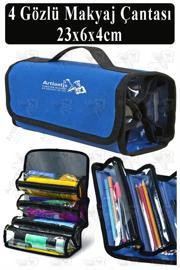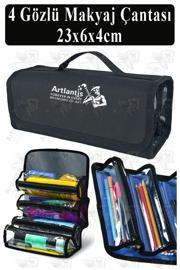 Artlantis 4 Gözlü Makyaj Çantası 1 Adet Dört Bölümlü Makyaj Sanatsal Şeffaf Bölmeli Kulplu Taşınabilir Kumaş Kalemlik