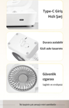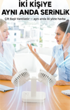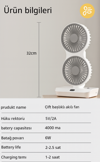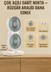 - Bu 4 kademeli masa üstü vantilatör, çift bağımsız dönebilen kafası sayesinde istediğiniz yöne serinlik sağlar. 360° dönebilme özelliği ile geniş alanlarda etkili hava akışı sunar. Üzerindeki küçük LED ışık, gece kullanımında ekstra konfor ve aydınlatma sağlar. Şık tasarımı ve sessiz çalışmasıyla ev, ofis veya yatak odası için ideal bir seçimdir.