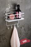 Sas Haus 4 Kancalı Ayarlanabilir Banyo Duş Rafı – Paslanmaz Kristal Şampuanlık (Yapıştır/Vidala) Beyaz-Beyaz