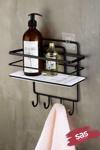 - 1 Adet Siyah-Beyaz Kristal Detaylı Banyo Rafı