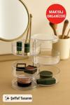 Open Home Concept 4 Katlı Şeffaf Döner Organizer – Takı, Makyaj ve Aksesuar Düzenleyici, Taşınabilir Tasarım Şeffaf
