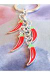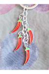 4 Kırmızı Biberden Oluşan Metal Anahtarlık – Enerjik ve Dikkat Çekici Tasarım