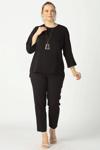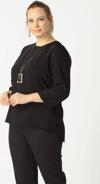 4041 SİYAH KOLYELİ ARKA YAKA FERMUARLI ASİMETRİK BÜYÜK BEDEN BLUZ Kumaş Türü: Krep kumaş.