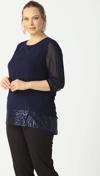 4046 ŞİFON -PAYET DANTEL KOMBİNLİ BÜYÜK BEDEN BLUZ Kumaş Türü: ŞİFON VE PAYETLİ DANTEL kumaş kombinli. ; Günlükve gece kullanıma uygun şık bir modeldir. ; Mankenin Ölçüleri: Boy: 175 cm Basen: 106 cm Göğüs: 100 cm Bel: 82 cm Mankenin Üzerindeki Beden: 44 Önemli: Yıkama talimatlarına uygun temizleme yapınız.;