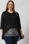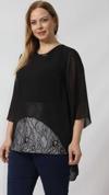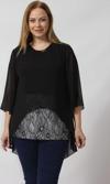 4048 SİYAH ŞİFON -SİMLİ DANTEL KOMBİNLİ BÜYÜK BEDEN BLUZ Kumaş Türü: ŞİFON VE SİMLİ DANTEL kumaş kombinli.