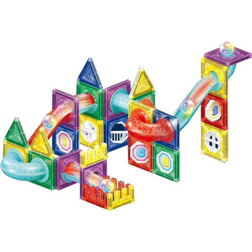 Set, parçalar arasında bir bağlantı sağlayan, böylece çocukların yarattığı modelleri destekleyen ve ayrılmalarını önleyen bir dizi manyetik kare parçanın yanı sıra başka şekiller de içerir. Bu oyun türü uygulamalı inşa deneyimi sunarken temel becerilerin geliştirilmesine de katkıda bulunur. Parçaları farklı şekillerde dizayn ederek topu dilediğiniz gibi yönlendirebilirsiniz. Bazı kulelerde topun aşağı yuvarlanmasını sağlayan rampalar da mevcuttur. Topu yönlendirirken rampalardan yardım alabilirsiniz. Ürün ile birlikte verilen toplar, harekete geçtiklerinde parlayan ve büyüleyici bir görsel gösteri sunan bir aydınlatma mekanizmasıyla donatılmıştır.