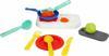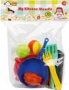 Set içerisinde; Ocak, kaşık, çatal, bıçak, kepçe, kevgir, tabak, tava, tavuk, marul ve kesme tahtası bulunmaktadır.