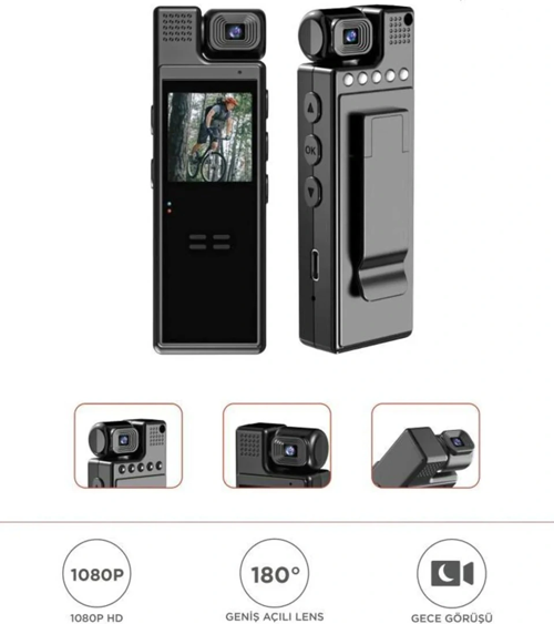 4k 180 Derece Vücut Kamerası Wifi Gece Görüşlü Aksiyon Kamerası