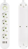 4 Priz ve 3 USB Çıkışı: Vea VA-21560, dört adet priz ve üç adet USB çıkışı ile donatılmıştır, böylece çok sayıda elektronik cihazı aynı anda şarj edebilir veya kullanabilirsiniz. Prizler, geniş aralıklı tasarımı sayesinde farklı priz tiplerine uyum sağlar.