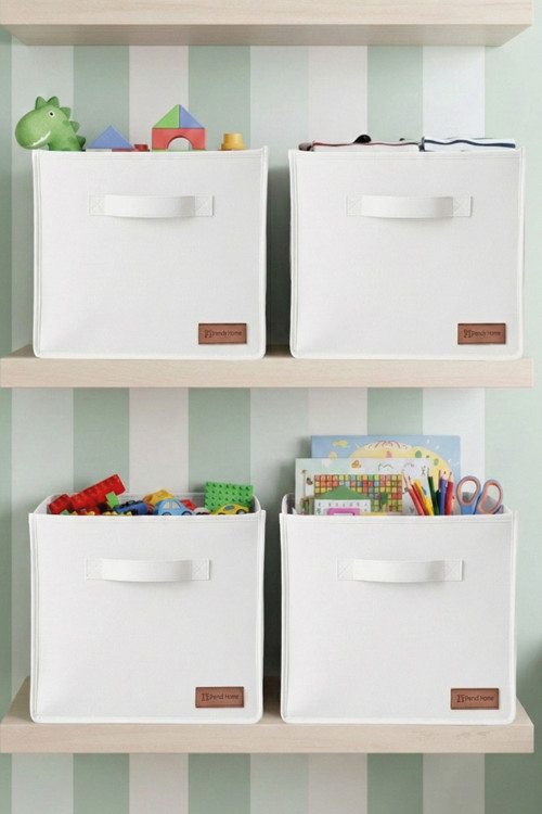 4`lü Beyaz Desteksiz Saklama Kutusu 28x28x28 Dekoratif Kulplu Organizer Dolap İçi Çamaşır Oyuncak Dü