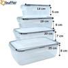 - BUFFER® 4'lü İç İçe Kilitli Kapaklı Plastik Erzak Saklama Kapları gıdalarınızı ilk günkü tazeliği ile muhafaza etmenizi sağlar Kapaksız olarak Buzluk ve Bulaşık Makinesinde kullanabilirsiniz