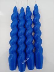 qosrix 4'lü Mavi Italyan Burgulu Şamdan Soya Mumu Doğal Kokulu Uzun Çubuk Konik Burgu Mum Spiral Dekoratif