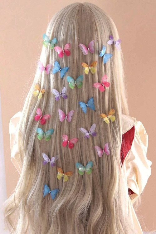 Dört farklı renk seçeneğiyle her kıyafete uyum sağlayan, canlı ve göz alıcı renkli kelebek desenli tokalar.; Gerçekçi kumaş malzemesi sayesinde dayanıklı ve uzun ömürlü kullanım sunar.; Şık ve modern tasarımıyla saçlarınıza zarif bir dokunuş ekler, her ortamda dikkat çeker.; Pratik kullanım için tasarlanmış olup, kolayca takılıp çıkarılabilir ve farklı saç stilleri için idealdir.; Farklı renk seçenekleriyle kişisel tarzınıza uygun olanı seçerek kombinlerinizi tamamlayabilirsiniz.;