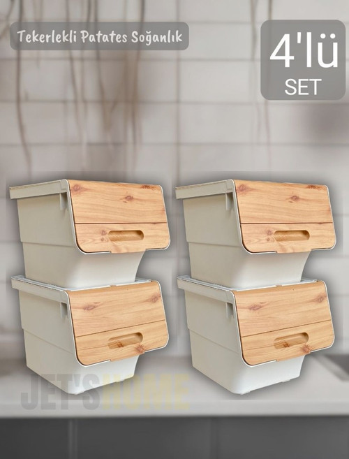 Jet' s Home 4'lü Tekerlekli Patateslik Soğanlık BPA Free Oyuncaklık Erzak Kutusu Sebzelik Bambu 48 Lt
