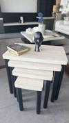 LÜTFEN ÜRÜNÜ KAPIDA AÇMADAN TESLİM ALMAYINIZ! ; ÜRÜNDE BARİZ BİR HASAR GÖRÜLMESİ DURUMUNDA HASAR KAYIT TUTANAĞI TUTTURUNUZ.; ; Ürünün üst tablalarında 1.Kalite Çift MDFLAM malzeme kullanılmıştır.; ; Kenarları TRAVERTENE UYGUN BEJ RENGİ LAKE BOYADIR.; KULLANDIĞIMIZ BOYA EN71_3 AVRUPA BİRLİĞİ STANDARDINA UYGUNDUR.; (EN71-3 VÜCUDA GİRDİKTEN SONRA ATILAMAYAN, ARSENİK, ANTİMON, BARYUM,KADMİYUM, KROM, KURŞUN, CİVA, SELENYUM GİBİ AĞIR METALLERE SINIRLAMA GETİREN BİR AVURUPA BİRLİĞİ STANDARDIDIR.; ) Bohem ayaklar GÜRGEN ağacından üretilmiştir.; Bohem ayaklar kendi atölyemizde ÖZEL SİYAH LAKE olarak imal edilmiştir.; ÖLÇÜLERİ AŞAĞIDAKİ GİBİDİR; En Büyük Zigon Sehpanın Ölçüleri: Genişlik 65cm, Derinlik 40,5cm, Yerden Yükseklik 57.5cm Büyük Zigon Sehpanın Ölçüleri: Genişlik 52,5cm, Derinlik 40,5cm, Yerden Yükseklik 52,5cm Orta Zigon Sehpanın Ölçüleri Genişlik 38,5cm, Derinlik 40,5cm, Yerden Yükseklik 47,5cm Küçük Zigon Sehpanın Ölçüleri Genişlik 25cm, Derinlik 40,5cm, Yerden Yükseklik 42,5cm