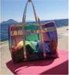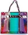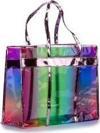 Açık Pembe ayna deri Gökkuşağı baskılı şeffaf PVC