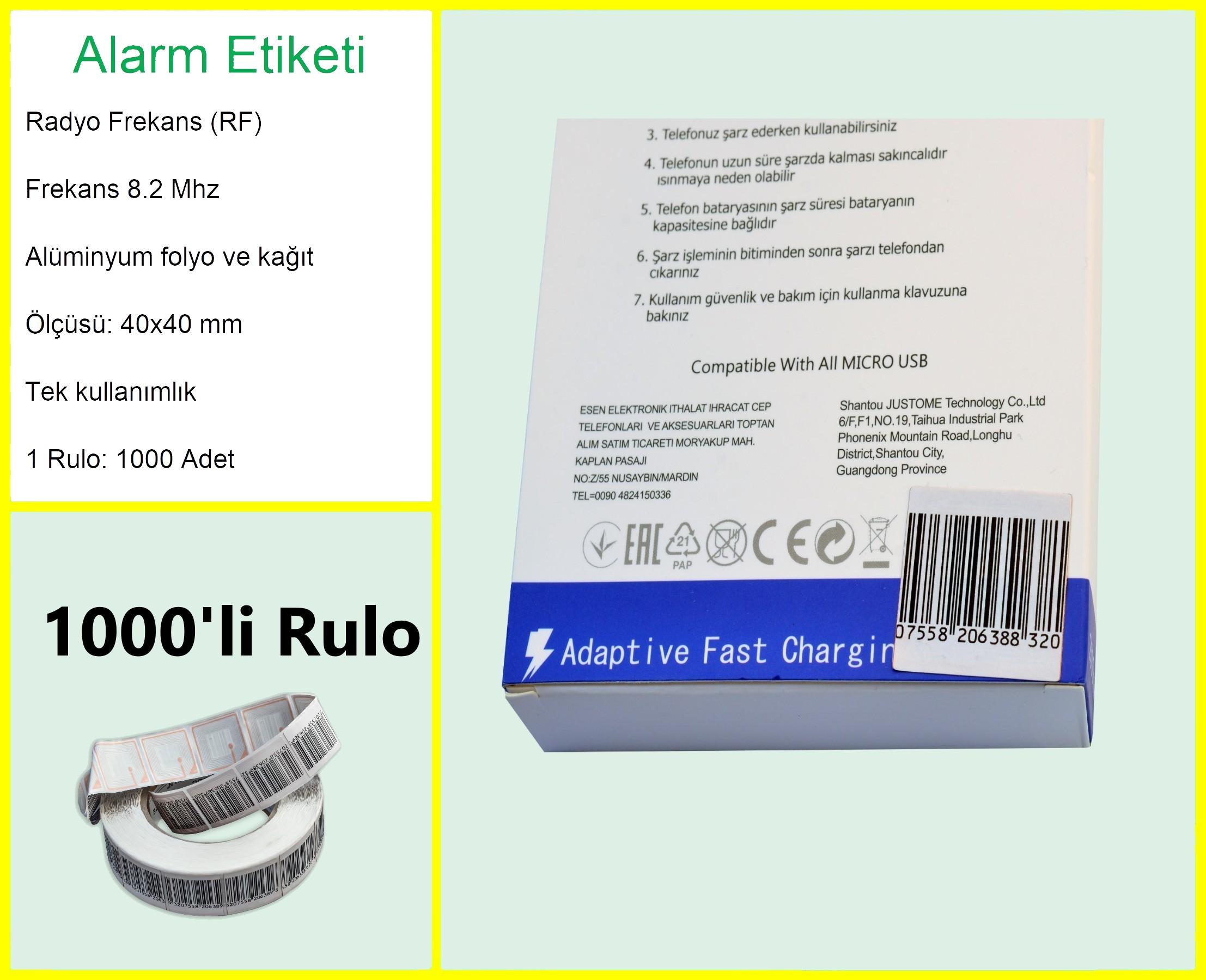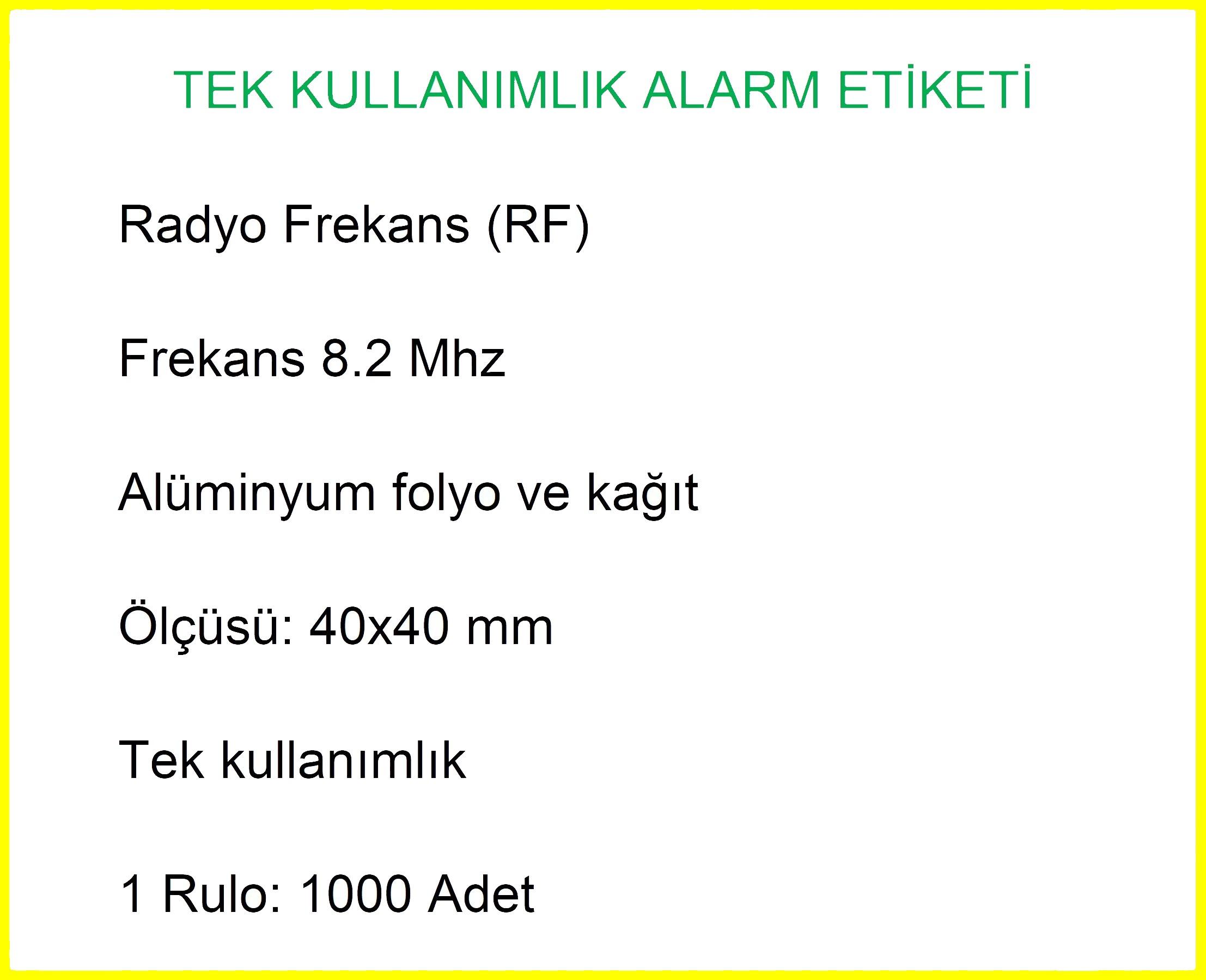 4x4 cm Barkodlu Alarm Etiketi RF Radyo Frekans 1 Rulo: 1000'li Rulo