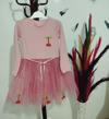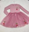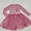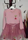 5-6-7 Yaş Kiraz Desenli Kurdela Kuşaklı Astarlı Uzun Kollu Kız Çocuk Tütü Elbise Gül Kurusu