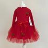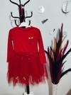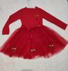 5-6-7 Yaş Kiraz Desenli Kurdela Kuşaklı Astarlı Uzun Kollu Kız Çocuk Tütü Elbise Kırmızı