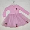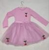 5-6-7 Yaş Kiraz Desenli Kurdela Kuşaklı Astarlı Uzun Kollu Kız Çocuk Tütü Elbise Pembe