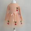 5-6-7 Yaş Kiraz Desenli Kurdela Kuşaklı Astarlı Uzun Kollu Kız Çocuk Tütü Elbise Somon