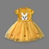 5-6-7 Yaş Payetli Tavşan Baskılı Kız Çocuk Elbisesi Hardal