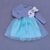 5-6-7 Yaş Pelüş Tavşan Desenli Kurdela Kuşaklı Astarlı Kız Çocuk Tütü Elbise Turkuaz