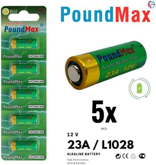 PoundMax Alkalin güvenlik pilleri, 23AE/A23/LRV08/MN21, 12 V, 5 adet