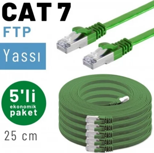 5 adet 25 cm IRENIS CAT7 Kablo Yassı FTP Ethernet Network LAN Kablosu, Yeşil
