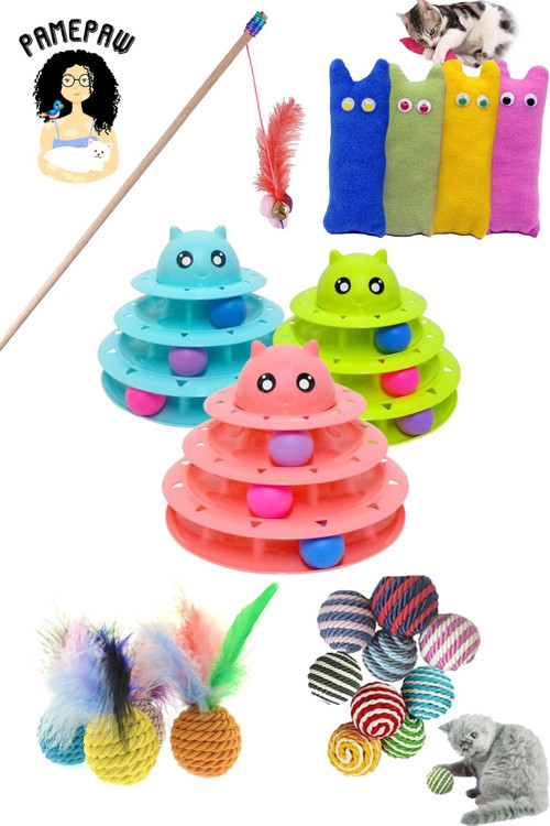 Pamepaw 5 Li Set 1 Adet 3 Katlı 1Adet Tüylü Olta 1Adet Tüylü Top 1Adet Kedi Naneli Oyuncak 1Adet Sarma Top
