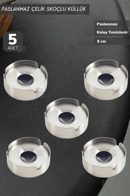 5’li Set Skoçlu Küllük - 8 cm Paslanmaz Çelik Kül Tablası Sigara Küllüğü