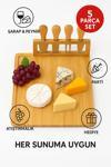 Open Home Concept 5 Parça Bambu Peynir Sunum Tahtası Seti – Bıçak, Çatal ve Spatulalı Şık Peynir Kesim Panosu