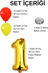 5 Yaş Sarı Kırmızı Taraftar Temalı Doğum Günü Seti Sarı Kırmızı Balonlar Altın Folyo Rakam